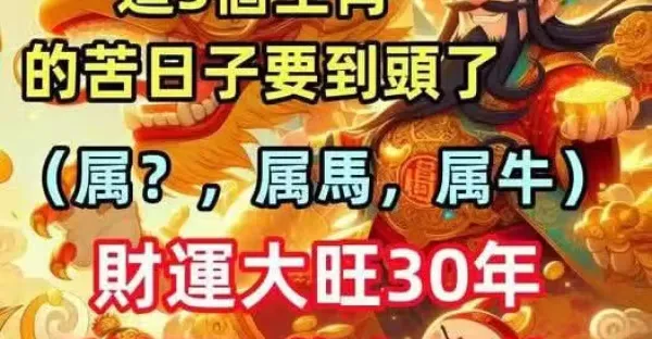 這3個生肖的苦日子要到頭了(屬?,屬馬,屬牛)財運大旺30年,彩票頭獎中不停