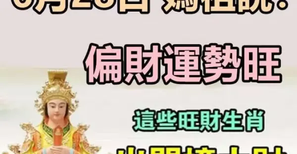 偏財運勢旺,6月28日出門撞大財,今晚中頭獎的生肖