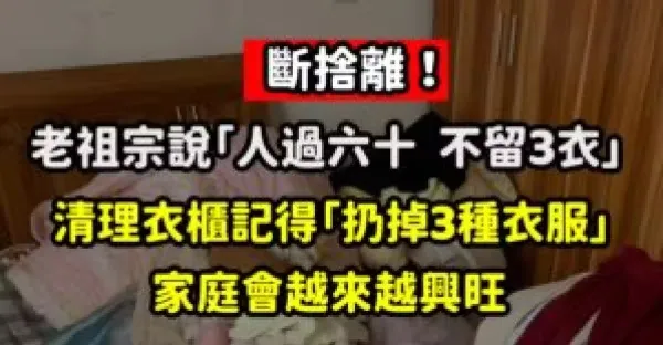 斷舍離!老祖宗說「人過六十,不留3衣...」 清理衣櫃記得「扔掉3種衣服」家庭會越來越興旺!