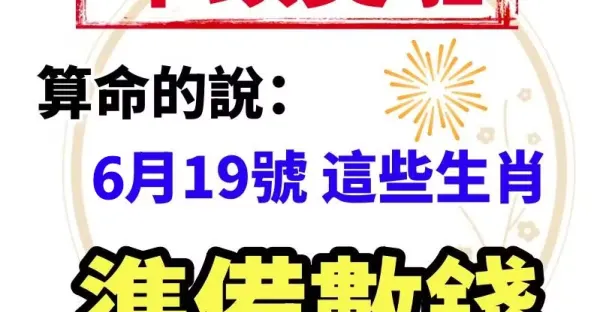 6月19日一筆橫財入命,八個生肖財運當頭,徹底翻身!