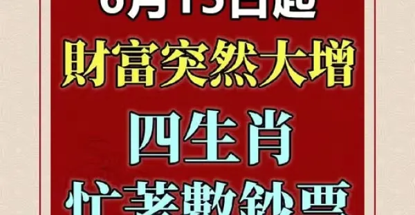 6月15日馬上發橫財,六大生肖開心數鈔票!