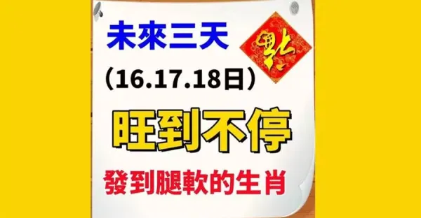 未來三天(6月16.17.18日)旺到不停,發到腿軟的生肖
