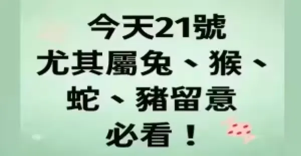 今天21號,尤其屬兔、猴、蛇、豬留意 必看
