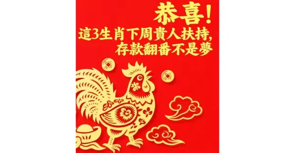 恭喜!這 「3生肖」 下周有貴人扶持,存款翻番不是夢!