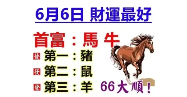 6月6日被財神爺提名,正財偏財、橫財,財源滾滾數錢的