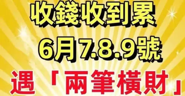 收錢收到累!6月7.8.9號遇「兩筆橫財」日子一順百順的生肖!