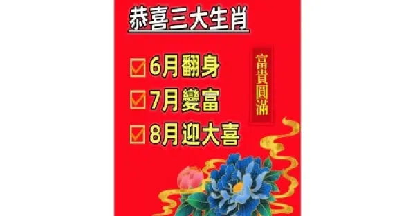 6月翻身,7月變富,8月迎大喜,富貴圓滿