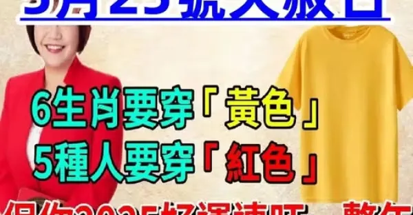 算命師說:5月25號天赦日!6生肖要穿黃色,5種人要穿紅色,保你平平安安災難消除!2025好運連旺一整年!