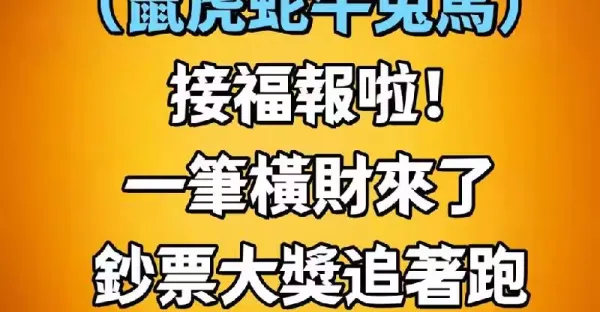 鼠虎蛇牛兔馬接福報:一筆橫財來了,鈔票大獎追著跑 記得提醒家裡人
