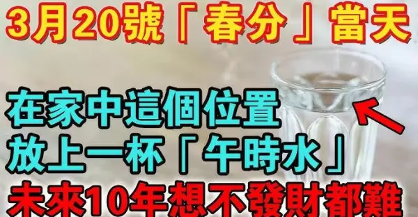2025年第一個大日子!3月20號「春分」當天,在家中5個位置,放上一盆「午時水」,未來10年想不發財都難!