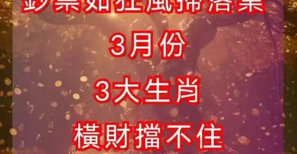 鈔票如狂風掃落葉,3月份:3大生肖橫財擋不住!