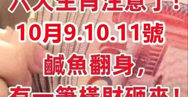 10月9.10.11號鹹魚翻身,有一筆橫財砸來的六大生肖!