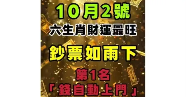 【10月2日】六生肖財運最旺 ,鈔票如雨下!