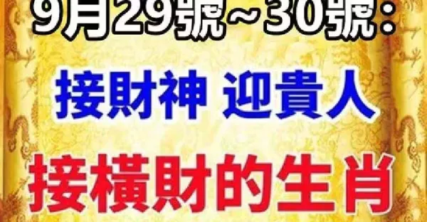 9月29號~30號:接財神 ,迎貴人,接橫財的生肖