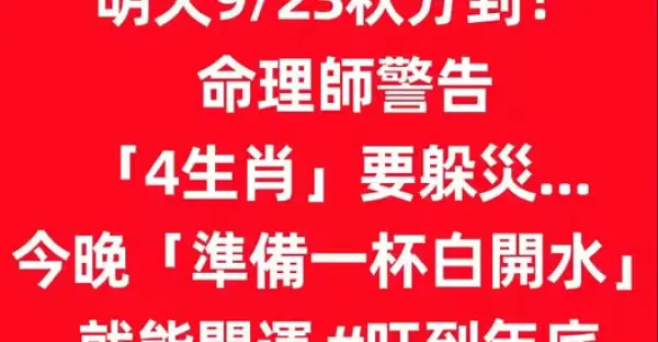 明天9/23秋分到! 命理師警告「4生肖」要躲災...今晚「準備一杯白開水」就能開運 #旺到年底!