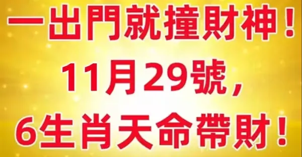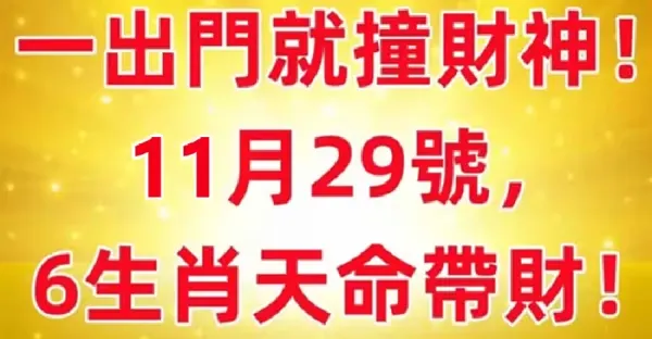 一出門就撞財神!11月29號 ,6生肖天命帶財 !