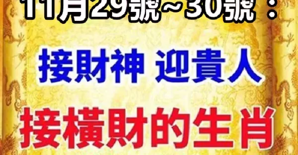 11月29號~30號:接財神 ,迎貴人,接橫財的生肖