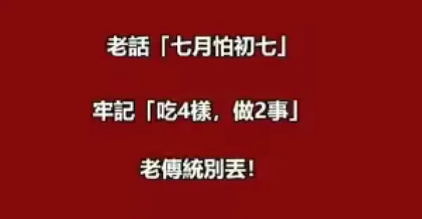 老話「七月怕初七」,明日七月初七,牢記「吃4樣,做2事」,不是迷信