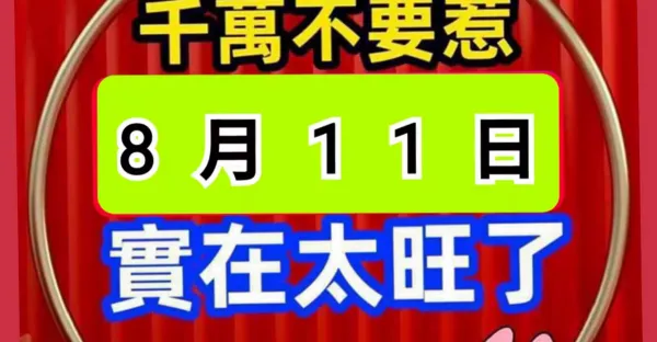 8月11號求財得財,橫財遍地,橫豎都是發的生肖!