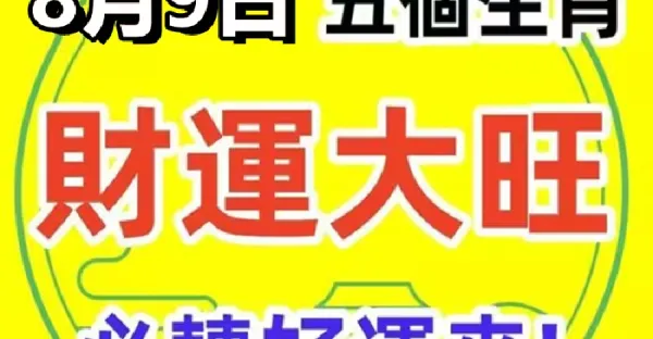 8月9日財運大旺的五個生肖,必轉好運來!