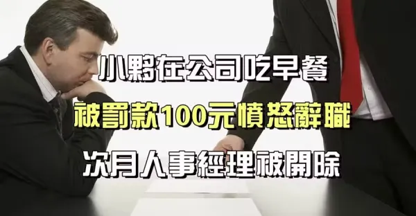 小夥在公司吃早餐,被罰款100元憤怒辭職,次月人事經理被開除引熱議:罰款不是目的,教育才是