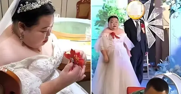 相差20歲!115KG新娘魁梧威猛,娶65KG鮮肉「給44萬聘禮」婚禮上,新郎緊鎖眉頭成亮點!