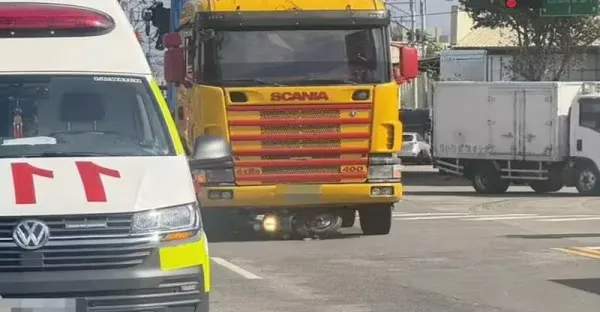 女騎士右轉遭大車吞噬!烏日路口「死亡瞬間」全曝光 業者緊急出動吊車救援