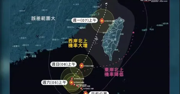 天氣/准丹娜絲明大迴轉加速!!粉專:風雨率先衝擊2地 停班課機率曝