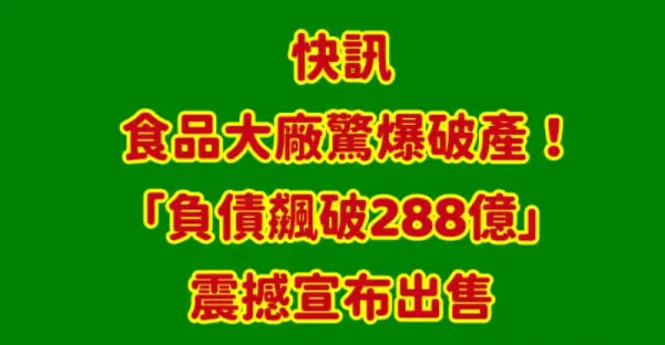 快訊/食品大廠驚爆破產!「負債飆破288億」震撼宣布出售!!