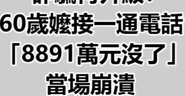 詐騙再升級!60歲嬤接一通電話「8891萬元沒了」當場崩潰!