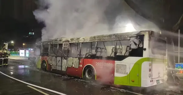 電動公車突冒煙起火 駕駛驚恐靠邊急停、乘客驚慌疏散