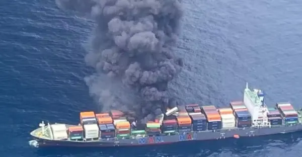 快訊/萬海貨輪大爆炸!近40個貨櫃炸飛入海「2台灣人失蹤」濃煙沖天危急情況曝