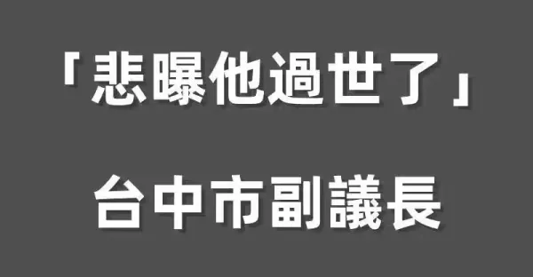 快訊/64歲顏清標「悲曝他過世了」台中市副議長「出面證實死訊!」
