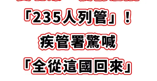 雙北爆一疫情淪陷「235人列管」! 疾管署驚喊「全從這國回來」:有一症狀要注意 #傳染力極強