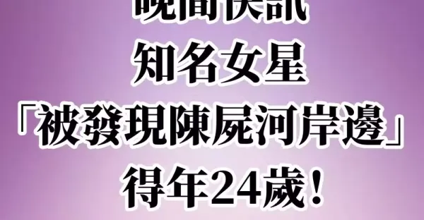 晚間快訊/知名女星「被發現陳屍河岸邊」得年24歲