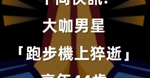 午間快訊/大咖男星「跑步機上猝逝」享年44歲!