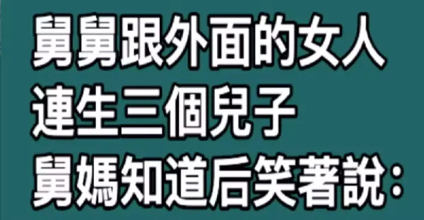舅舅跟外面的女人連生三個兒子,舅媽知道後笑著說:你開心就好!舅舅直到臨終前,舅媽說出了真相........