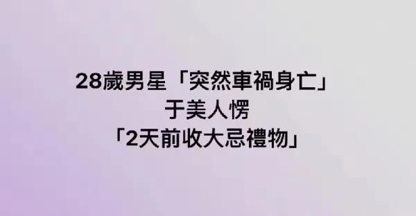 28歲男星「突然車禍身 亡」..于美人愣「2天前收大忌禮物」