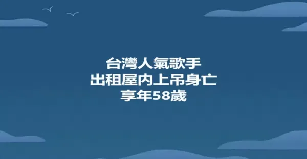 台灣人氣歌手,出租屋內上 吊身亡,享年58歲