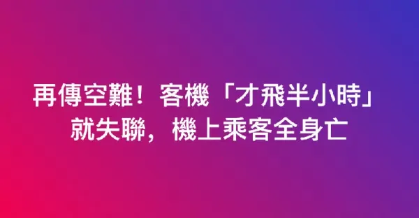 再傳空難!客機「才飛半小時」就失聯,機上乘客全身亡 ...
