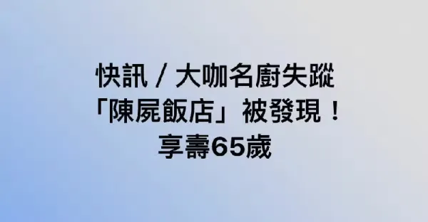 快訊/大咖名廚失蹤...被發現!「陳屍飯店」享壽65歲