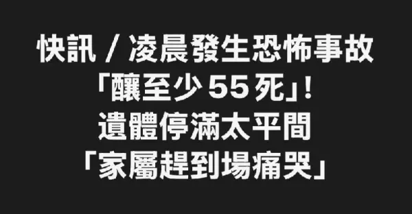 凌晨發生恐怖事故「釀至少55死」!遺體停滿太平間「家屬趕到場痛哭」……