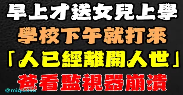 早上才送女兒上學,學校下午就打來「人已經離開人世」爸看監視器崩潰