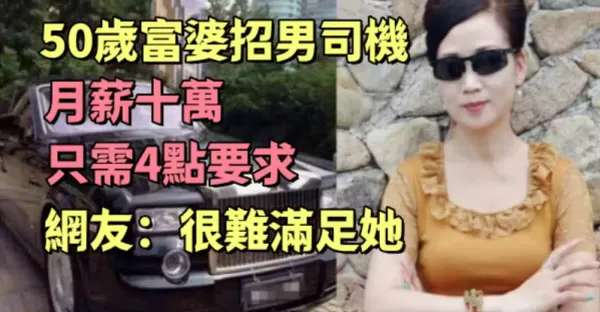 50歲富婆招男司機,月薪十萬隻需4點要求,網友:很難滿足她