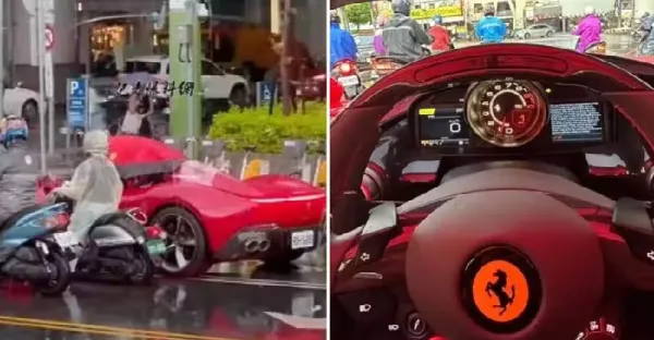 8500萬法拉利現身台中街頭!「撐傘開車」路人看傻 車主曬車內視角回應了