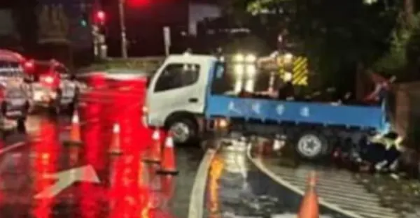 雨天路滑恐釀禍!貨車打滑「瞬間騰空」 女騎士慘遭波及