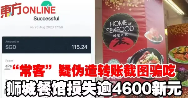 「常客」疑偽造轉帳截圖騙吃 獅城餐館損失逾4600新元