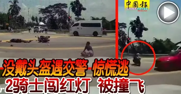 沒戴頭盔遇交警 驚慌逃 2騎士闖紅燈 被撞飛