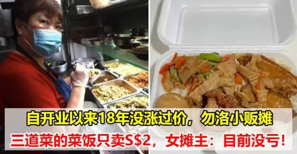 自開業以來18年沒漲過價,勿洛小販攤三道菜的菜飯只賣S$2,女攤主:目前沒虧