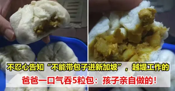 不忍心告知「不能帶包子進新加坡」,越堤工作的爸爸一口氣吞5粒包:孩子親自做的